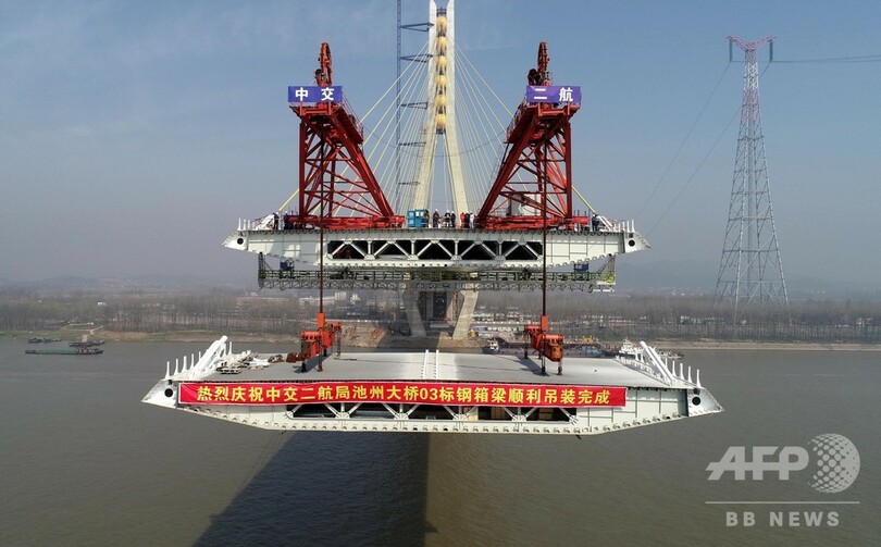 池州長江公路大橋での作業は、山東省(Shandong )済南(Jinan)と安徽省祁門(Qimen)を結ぶ済祁高速道路が、長江(揚子江、Yangtze River)をまたぐための重要工事で、安徽省池州市と銅陵市で長江南北両岸を新たに結ぶ。