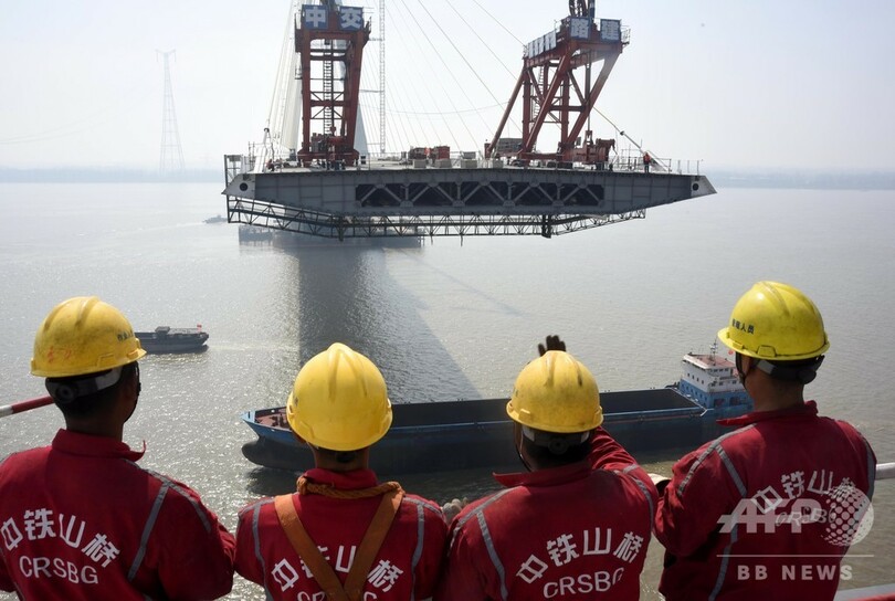 陸上部分も含めた大橋の全長は41.026キロで、長江をまたぐ長江大橋部分は長さ5.8キロで、主塔の高さが237メートルの2本柱形の斜張橋だ。現在、大橋の完成まで最後のカウントダウン段階に入っており、予定では3月末に橋桁の接合工事が完了し、6月末には車両が通行できるようになるという。(c)CNS/JCM/AFPBB News