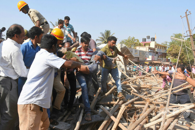 【3月22日 AFP】インド南部カルナタカ(Karnataka)州で19日、建設中だった建物が崩壊し、少なくとも17人が死亡した。当局によると、事故発生から3日後の22日になって、がれきの中から男性2人と女性1人が救出されたという。