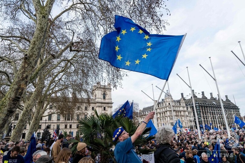 【3月24日 AFP】欧州連合(EU)離脱(ブレグジット、Brexit)をめぐり国内政治がまひ状態にある英国で23日、残留支持派の人々がロンドンに集結し、2度目の国民投票実施を求めてデモ行進した。「Put it to the People(国民に投票させろ)」と題されたデモには、英全土から残留支持派が車や鉄道でロンドンに集結。主催者発表によると参加者は約100万人で、ここ数十年来で最大規模のデモとなった。