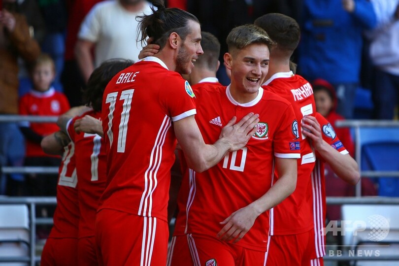公式戦では代表初先発となったスウォンジー・シティ(Swansea City)のジェームズは、試合開始からわずか5分で得点を決めるとこれが決勝ゴールとなり、ウェールズが白星発進に成功した。(c)AFP