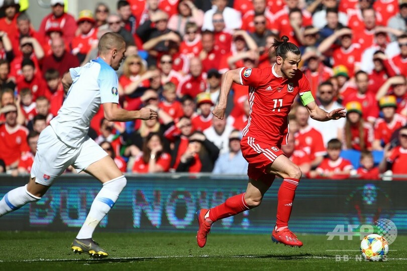 公式戦では代表初先発となったスウォンジー・シティ(Swansea City)のジェームズは、試合開始からわずか5分で得点を決めるとこれが決勝ゴールとなり、ウェールズが白星発進に成功した。(c)AFP