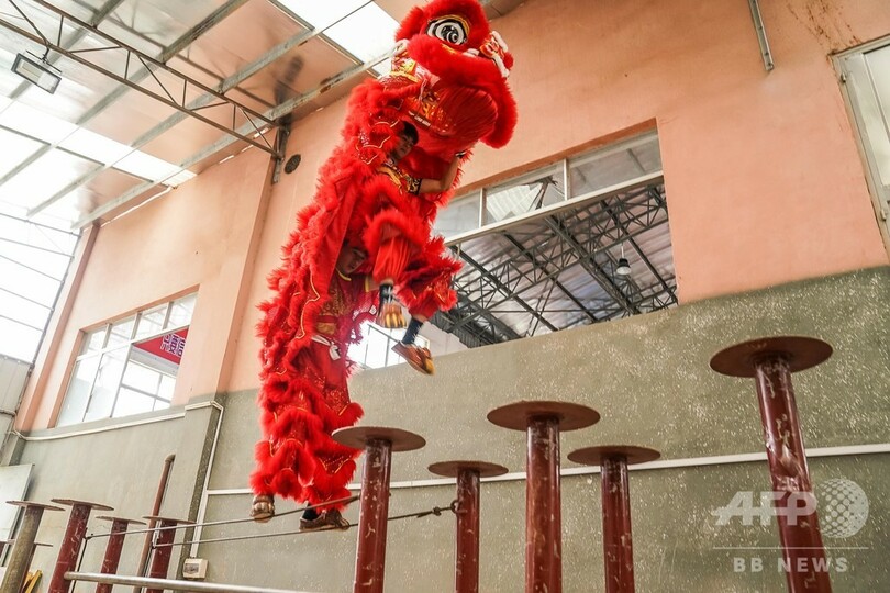 難易度の高いさまざまな動作で、獅子の趣を余すところなく表現している。(c)CNS/JCM/AFPBB News