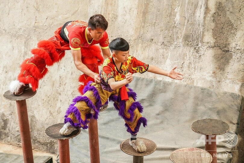 難易度の高いさまざまな動作で、獅子の趣を余すところなく表現している。(c)CNS/JCM/AFPBB News