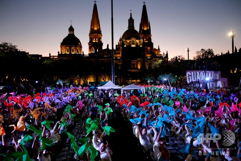 【3月26日 AFP】メキシコのハリスコ(Jalisco)州グアダラハラ(Guadalajara)にあるリベラシオン広場(Plaza Liberacion)で24日、1486人がテキーラの試飲を行い、「世界最大のテキーラの試飲」でギネス世界記録(Guinness World Record)に認定された。(c)AFP