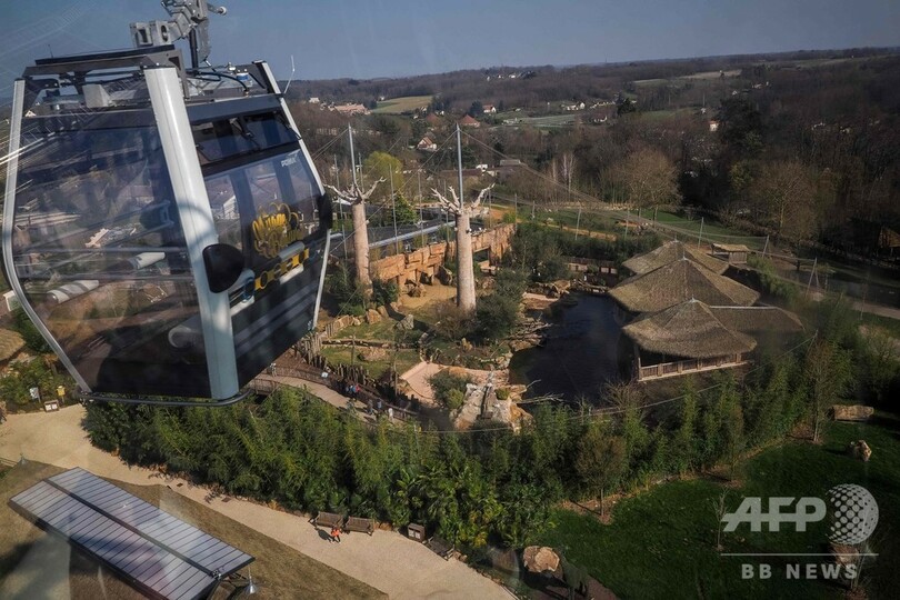 【3月26日 AFP】フランス中部サンテニャンシュルシェール(Saint-Aignan-sur-Cher)にあるボーバル(Beauval)動物園で23日、地上45メートルの高さから動物を眺められるロープウエーの運行が始まった。ロープウエーのゴンドラの床はガラス張りになっていて、動物を上から見て楽しむことができる。(c)AFP