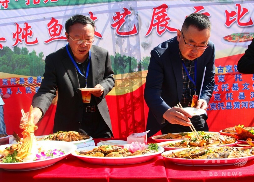「3月から5月が『開河魚』を食べる最高の時期です。『開河魚』を味わうことで黄河文化を体感できるのです」。大会会場で評判の高かった調理人の秦二虎(Qin Erhu)さんは魚を煮込みながら語った。(c)CNS/JCM/AFPBB News