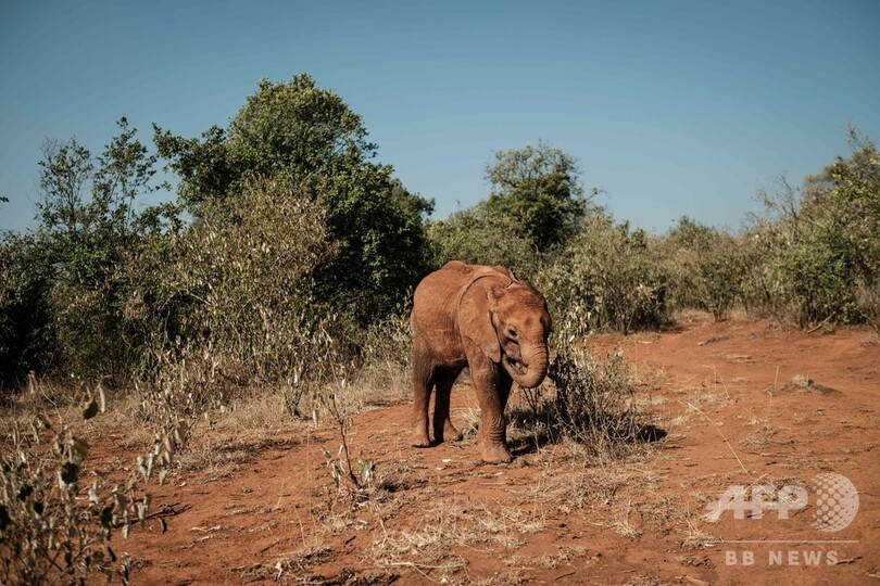 【3月28日 AFP】育ち盛りの3歳のゾウの子ども、ルガード(Luggard)は自分と同じく親のいない他の子ゾウの群れに遅れをとりつつ、立ち止まって草をはんだり、木の幹に体をこすりつけたしている。