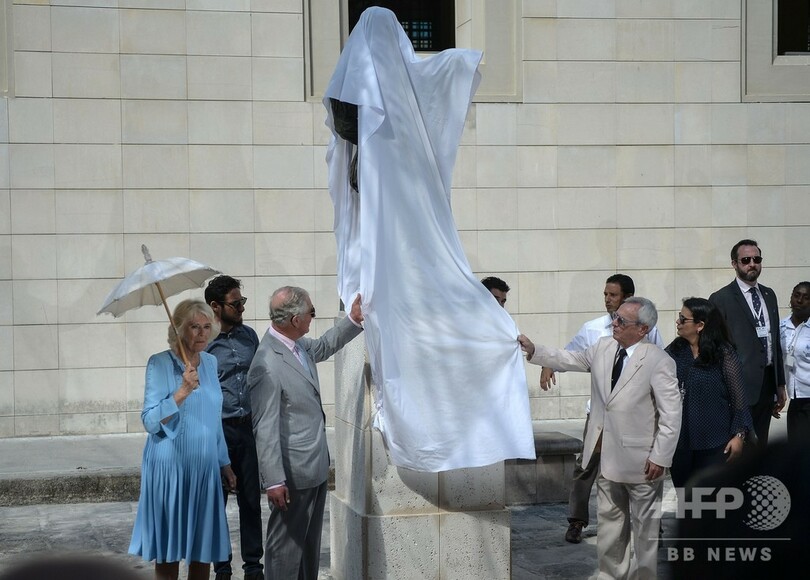 【3月26日 AFP】英王室の一員として初めて社会主義国キューバを公式訪問中のチャールズ皇太子(Prince Charles、70)とカミラ夫人(Camilla, Duchess of Cornwall)は25日、首都ハバナの旧市街で英劇作家ウィリアム・シェークスピア(William Shakespeare)像の除幕式に参加した。