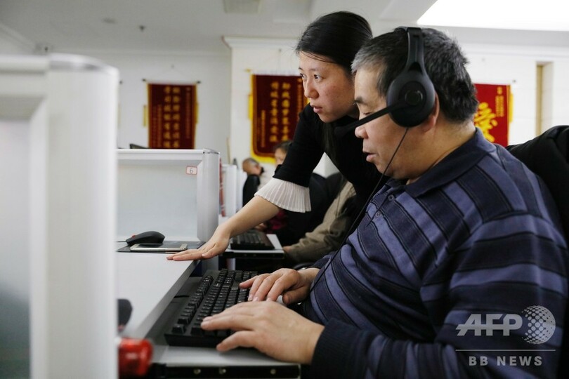 視覚障害者は、スクリーンリーダー(画像読み上げソフト)を搭載したパソコン操作の指導を受けていた。(c)CNS/JCM/AFPBB News