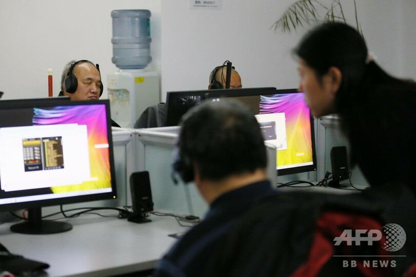 視覚障害者は、スクリーンリーダー(画像読み上げソフト)を搭載したパソコン操作の指導を受けていた。(c)CNS/JCM/AFPBB News