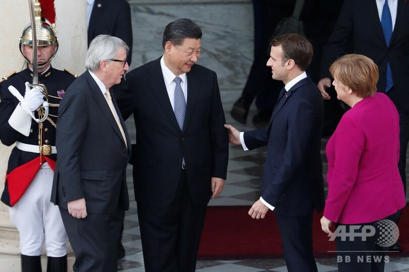 ドナルド・トランプ(Donald Trump)米政権の政策を発端とする緊張が高まる中、習主席はこの日、エマニュエル・マクロン(Emmanuel Macron)仏大統領、アンゲラ・メルケル(Angela Merkel)独首相、ジャンクロード・ユンケル(Jean-Claude Juncker)欧州委員会(European Commission)委員長と会談した。