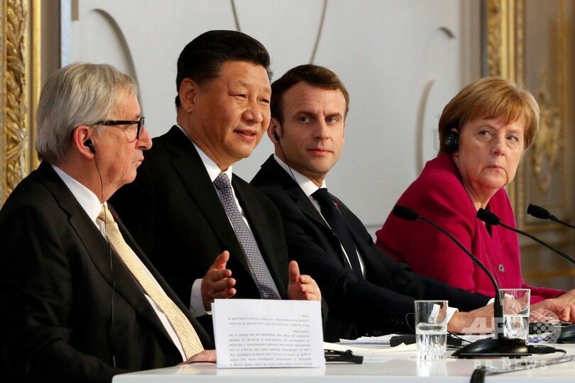 ドナルド・トランプ(Donald Trump)米政権の政策を発端とする緊張が高まる中、習主席はこの日、エマニュエル・マクロン(Emmanuel Macron)仏大統領、アンゲラ・メルケル(Angela Merkel)独首相、ジャンクロード・ユンケル(Jean-Claude Juncker)欧州委員会(European Commission)委員長と会談した。