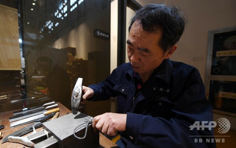 継承者である丁紀燦(Ding Jican)さんは、数十工程もある手作業の鍛造技術を忠実に守り、伝統的技術を40年間継承し守り続けている。(c)CNS/JCM/AFPBB News