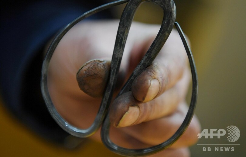 継承者である丁紀燦(Ding Jican)さんは、数十工程もある手作業の鍛造技術を忠実に守り、伝統的技術を40年間継承し守り続けている。(c)CNS/JCM/AFPBB News