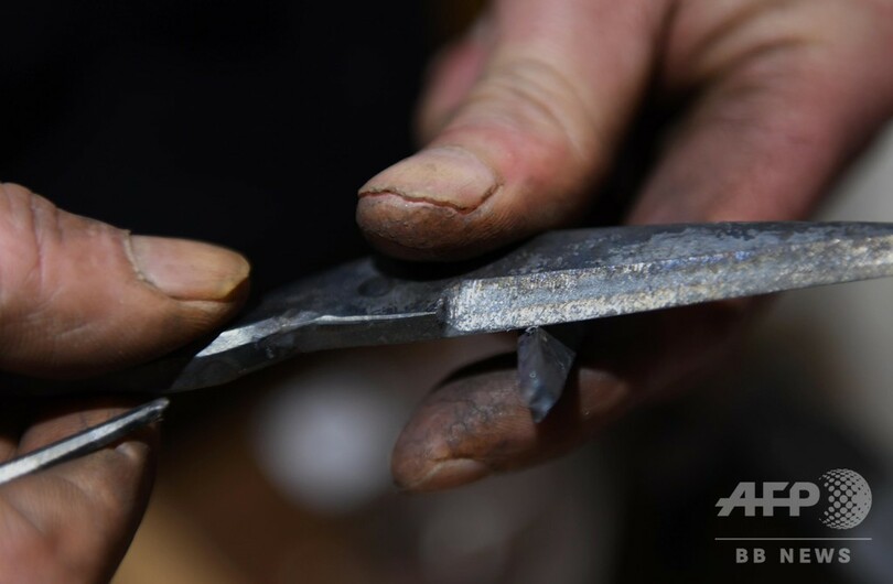 継承者である丁紀燦(Ding Jican)さんは、数十工程もある手作業の鍛造技術を忠実に守り、伝統的技術を40年間継承し守り続けている。(c)CNS/JCM/AFPBB News