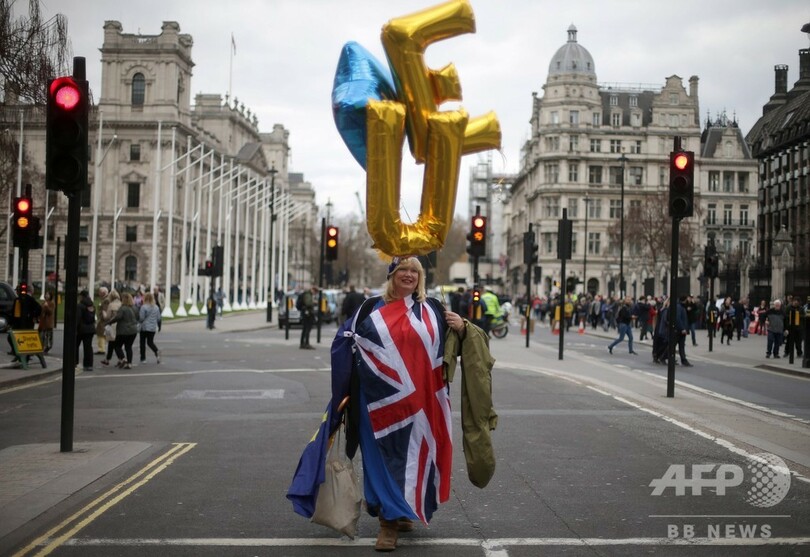 29日の採決にかけられるのは主要協定案のみで、それに付随する将来の対EU関係に関する政治宣言案は対象とならない。離脱の実現には、再度の議会採決が必要となる。メイ首相の協定案が議会で可決されなければ、英国は4月12日に「合意なき離脱」に突入する恐れがある。(c)AFP