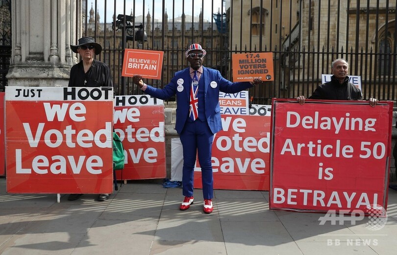 29日の採決にかけられるのは主要協定案のみで、それに付随する将来の対EU関係に関する政治宣言案は対象とならない。離脱の実現には、再度の議会採決が必要となる。メイ首相の協定案が議会で可決されなければ、英国は4月12日に「合意なき離脱」に突入する恐れがある。(c)AFP