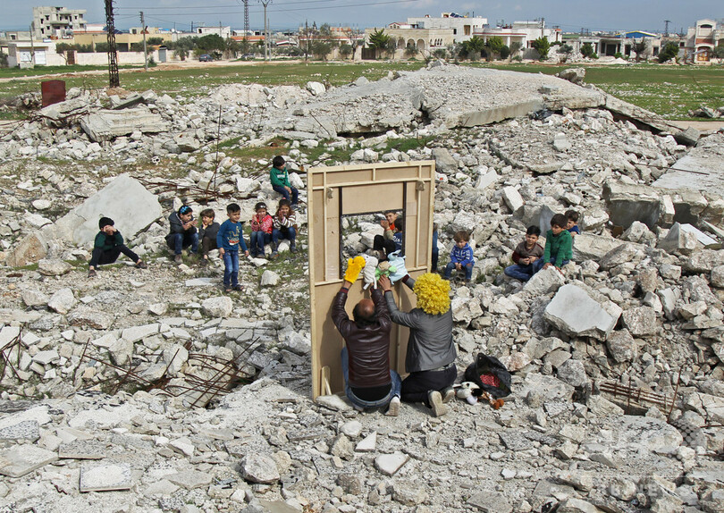 ニュース 社会 今日の1枚 【今日の1枚】楽しむ気持ちは、奪えない 2019年4月6日 12:15 発信地:サラキブ/シリア [ シリア 中東・北アフリカ ] このニュースをシェア シリア北部イドリブ県サラキブで、倒壊した建物のがれきが広がる中、急ごしらえの人形劇を通して子どもたちを楽しませる同国の役者たち。(2019年3月27日撮影)。(c) Amer ALHAMWE / AFP 【4月6日 AFP】シリア北部イドリブ(Idlib)県サラキブ(Saraqib)で、倒壊した建物のがれきが広がる中、急ごしらえの人形劇を通して子どもたちを楽しませる同国の役者たち。(c)AFP 社会 一覧へ> メディア・報道関係・法人の方向け 写真・動画 購入のお問合せ>