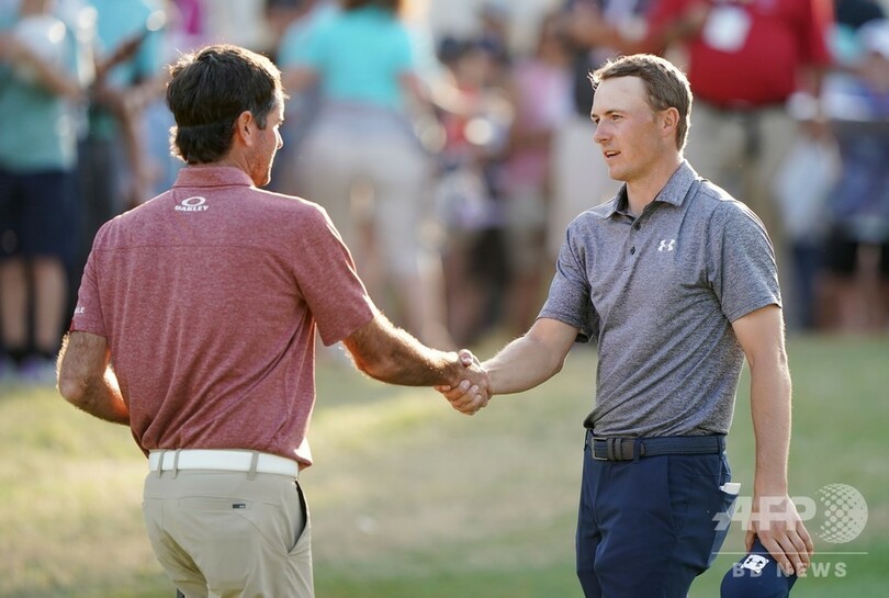 第24シードの松山英樹(Hideki Matsuyama)は、トップシードのダスティン・ジョンソン(Dustin Johnson、米国)に3アンド2で勝利して大会を終えた。(c)AFP