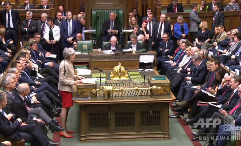 【3月29日 AFP】(更新)英議会は29日、テリーザ・メイ(Theresa May)首相が欧州連合(EU)とまとめた英国のEU離脱(ブレグジット、Brexit)協定案をめぐる3度目の採決を行い、またも否決した。これにより英国は、ブレグジットが長期にわたって延期されるか、混沌(こんとん)とした「合意なき離脱」を2週間後に迎えるかのいずれかとなった。
