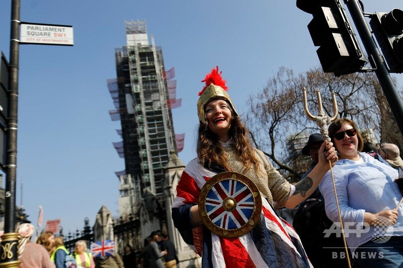 【3月29日 AFP】(更新)英議会は29日、テリーザ・メイ(Theresa May)首相が欧州連合(EU)とまとめた英国のEU離脱(ブレグジット、Brexit)協定案をめぐる3度目の採決を行い、またも否決した。これにより英国は、ブレグジットが長期にわたって延期されるか、混沌(こんとん)とした「合意なき離脱」を2週間後に迎えるかのいずれかとなった。