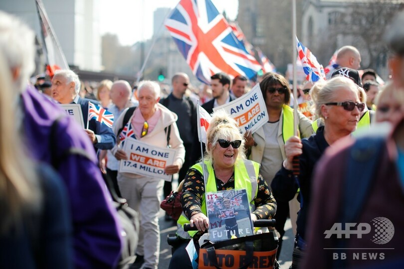 【3月29日 AFP】(更新)英議会は29日、テリーザ・メイ(Theresa May)首相が欧州連合(EU)とまとめた英国のEU離脱(ブレグジット、Brexit)協定案をめぐる3度目の採決を行い、またも否決した。これにより英国は、ブレグジットが長期にわたって延期されるか、混沌(こんとん)とした「合意なき離脱」を2週間後に迎えるかのいずれかとなった。
