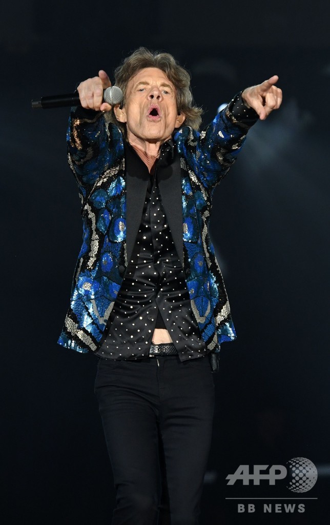 ジャガーには子どもが8人、孫が5人、ひ孫が1人いるが、70代になってからも精力的に公演を行ってきた。1962年に結成されたローリング・ストーンズは4~6月に米国とカナダで17公演を行う予定だった。(c)AFP