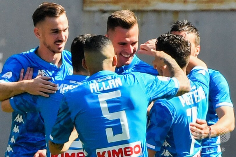 残り9試合で首位ユベントスに15ポイント離されている2位ナポリは、1990年以来となる優勝の可能性はほぼ消滅したが、これで3位インテルとの勝ち点差は10にまで広がった。(c)AFP/Emmeline MOORE