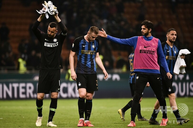残り9試合で首位ユベントスに15ポイント離されている2位ナポリは、1990年以来となる優勝の可能性はほぼ消滅したが、これで3位インテルとの勝ち点差は10にまで広がった。(c)AFP/Emmeline MOORE