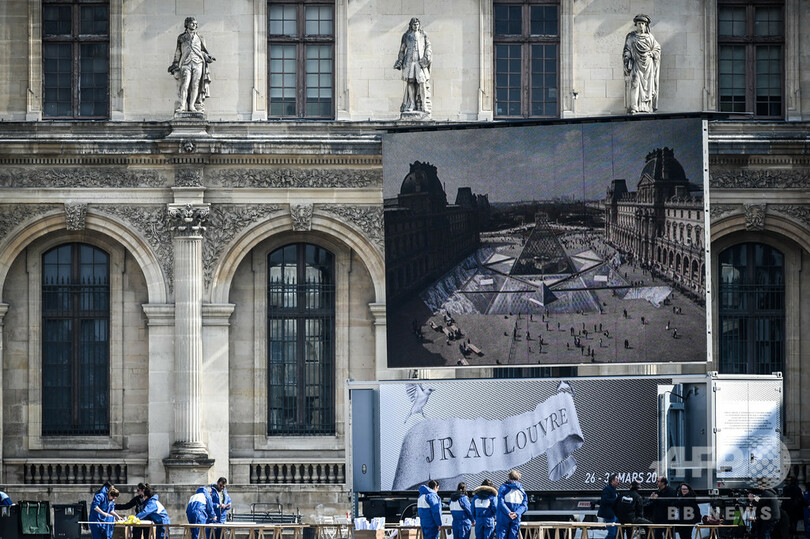【4月1日 AFP】フランス・パリのルーブル美術館(Louvre Museum)を象徴するガラスの「ピラミッド」が完成30周年を迎え、記念として仏人アーティストで写真家のJR(ジェイアール)氏が、ピラミッドを中心とした幻想的な巨大アート作品をつくり上げた。