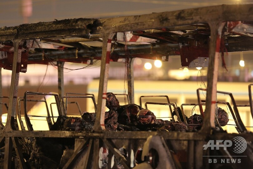 消防当局によると、火災が起きたのは州間をつなぐ路線を運行するバス。出発準備中に出火し、犠牲者の大半は上層階に取り残された人々だった。