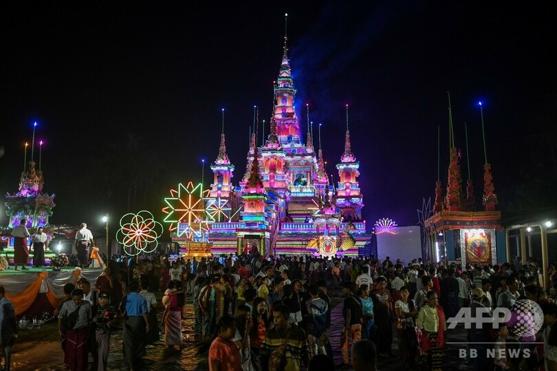 地元の僧侶(50)はAFPに対しサイケデリックな色調や明るくきらめくネオンライトで飾られた複数階の宮殿について、天国を表現していると説明。音楽が流れる中、大声で「私たちの宗教の英雄である僧侶が亡くなり、私たちは皆、彼を失ったことに打ちのめされてる」と述べた。