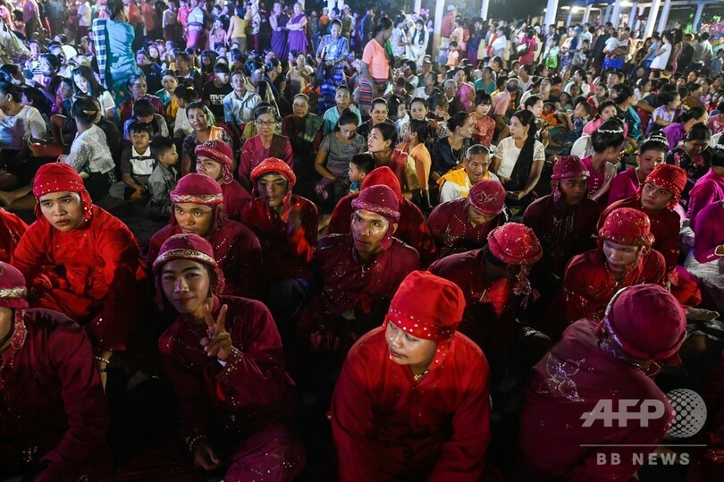 【4月5日 AFP】ミャンマー南部ムドン(Mudon)村で今週、地元で有名な僧侶の追悼式が盛大に営まれ、このために造られた彩りも鮮やかな宮殿に熱心な信者数千人が集まり、追悼の踊りや歌をささげた。