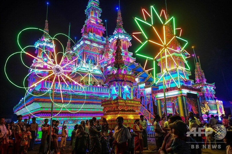 地元の僧侶(50)はAFPに対しサイケデリックな色調や明るくきらめくネオンライトで飾られた複数階の宮殿について、天国を表現していると説明。音楽が流れる中、大声で「私たちの宗教の英雄である僧侶が亡くなり、私たちは皆、彼を失ったことに打ちのめされてる」と述べた。