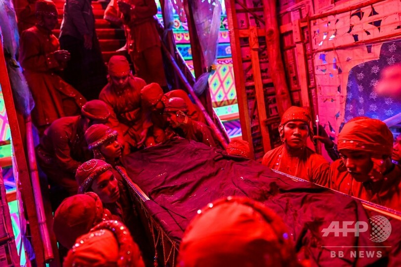 地元の僧侶(50)はAFPに対しサイケデリックな色調や明るくきらめくネオンライトで飾られた複数階の宮殿について、天国を表現していると説明。音楽が流れる中、大声で「私たちの宗教の英雄である僧侶が亡くなり、私たちは皆、彼を失ったことに打ちのめされてる」と述べた。