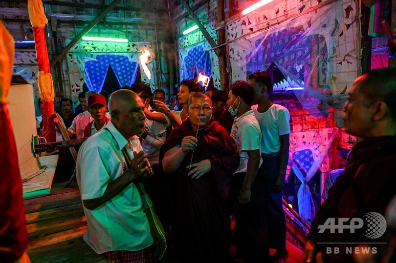 地元の僧侶(50)はAFPに対しサイケデリックな色調や明るくきらめくネオンライトで飾られた複数階の宮殿について、天国を表現していると説明。音楽が流れる中、大声で「私たちの宗教の英雄である僧侶が亡くなり、私たちは皆、彼を失ったことに打ちのめされてる」と述べた。