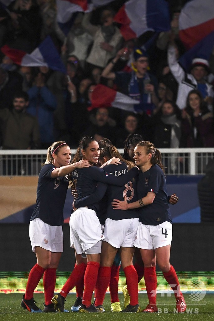 開幕まで2か月に迫った女子W杯フランス大会(FIFA Women's World Cup 2019)開催国のフランスは、ヴァレリー・ゴヴァン(Valerie Gauvin)のゴールで先制すると、ウージェニー・ルソメ(Eugenie Le Sommer)が追加点を挙げ、カディディアトゥ・ディアニ(Kadidiatou Diani)が3点目をマークした。