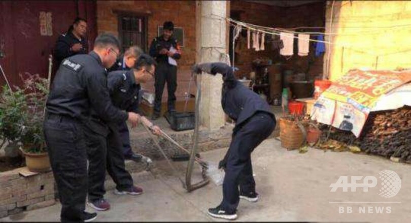 雲南の民家でキングコブラ捕物騒ぎ 体長2.5メートル