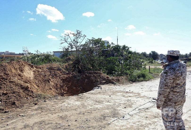 LNAは8日、トリポリ東部に位置するミティガ(Mitiga)空港の空爆実施を発表した。同空港の治安筋によると、空爆は滑走路を直撃したものの、死傷者は出なかった。(c)AFP/Imed Lamloum