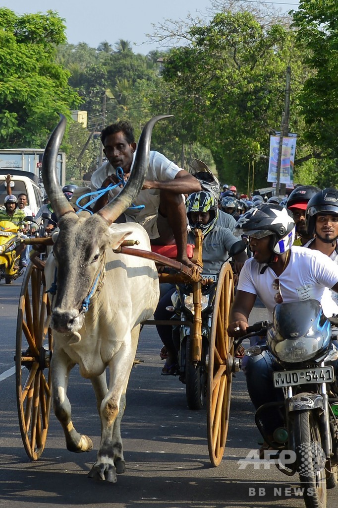 ニュース ライフ スリランカ伝統の牛車レース、牛もバイクも大迫力 2019年4月9日 9:44 発信地:コロンボ/スリランカ [ スリランカ アジア・オセアニア ] このニュースをシェア ‹ › ❮ 3/5 ❯ スリランカ・コロンボで行われた伝統の牛車レース(2019年4月6日撮影)。(c)LAKRUWAN WANNIARACHCHI / AFP 画像作成中 ! 【4月9日 AFP】毎年4月に新年を迎えるスリランカのコロンボ(Colombo)で6日、年末の伝統行事である牛車レースが行われた。多数派のシンハラ(Sinhalese)人も少数派のタミル(Tamil)人も、同じ時期に新年を祝う。今年は14日が元日に当たる。(c)AFP ライフ 一覧へ> メディア・報道関係・法人の方向け 写真・動画 購入のお問合せ>