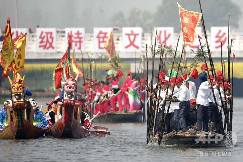 【4月30日 CNS】中国・江蘇省(Jiangsu)興化市(Xinghua)茅山鎮(Maoshan)で行われた、「茅山会船」(Maoshan Huichuan)と呼ばれる伝統のボートレース。