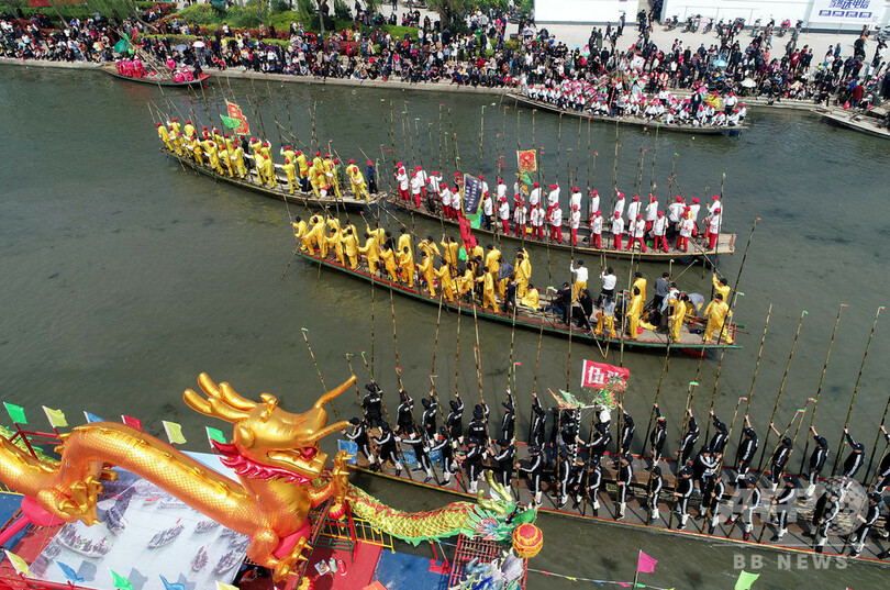 【4月30日 CNS】中国・江蘇省(Jiangsu)興化市(Xinghua)茅山鎮(Maoshan)で行われた、「茅山会船」(Maoshan Huichuan)と呼ばれる伝統のボートレース。