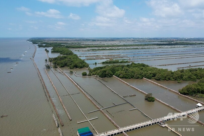 気候変動、工業型農業、急速な都市化という危険な組み合わせが原因で、タイ湾(Gulf of Thailand)沿岸は危機にひんしている。貴重なマングローブ林はなくなり、ソムヌックさんの寺院のように海面上昇で取り残される建物も出てきた。