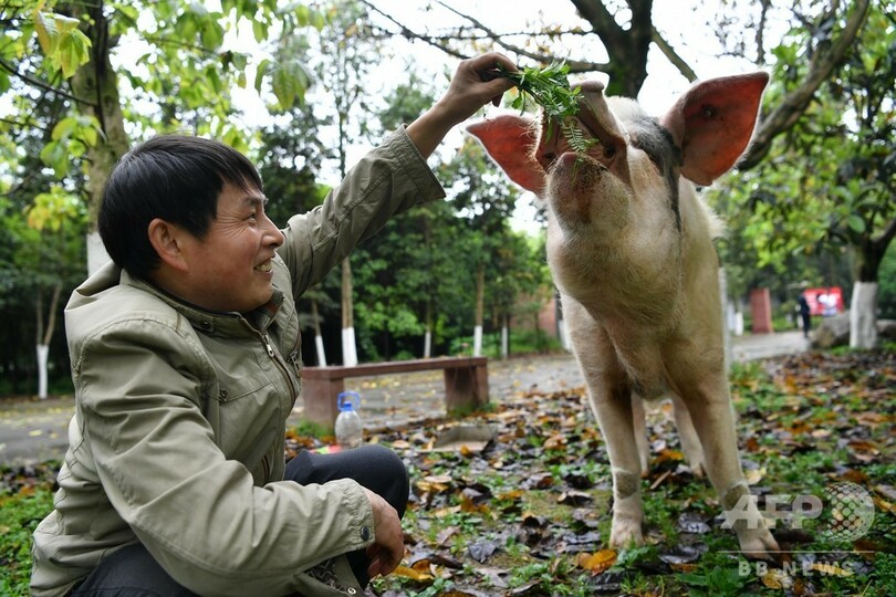 四川大地震で救助された「ガンバル豚」が12歳に