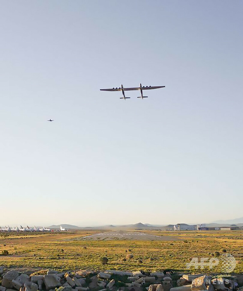 【4月14日 AFP】世界最大の航空機「ストラトローンチ(Stratolaunch)」が13日、米カリフォルニア州のモハベ砂漠(Mojave Desert)で初の試験飛行を行った。