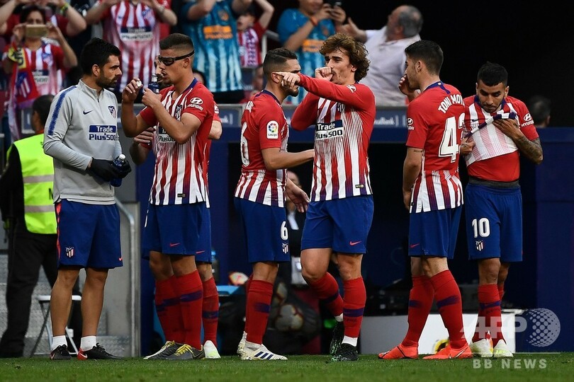 セルタ(Celta de Vigo)と対戦したアトレティコは、アントワーヌ・グリーズマン(Antoine Griezmann)の豪快な直接FKとアルバロ・モラタ(Alvaro Morata)の追加点で2-0の勝利を収めている。(c)AFP/Thomas ALLNUTT