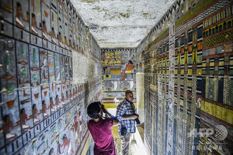 【4月14日 AFP】エジプトは13日、先月発見されたエジプト第5王朝の貴族の墓を公開した。色とりどりのレリーフ(浮き彫り細工)や保存状態の良い碑文が残されており、考古学的に重要なものだという。