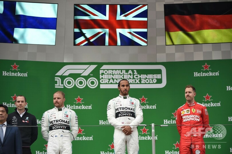 【4月15日 AFP】19F1第3戦中国GP(Chinese Grand Prix 2019)は14日、決勝が行われ、1コーナーでチームメートのバルテリ・ボッタス(Valtteri Bottas)からリードを奪ったメルセデスAMG(Mercedes AMG)のルイス・ハミルトン(Lewis Hamilton)が、F1通算1000回目のレースで完勝した。