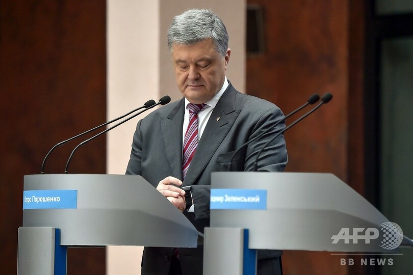 2014年の民衆蜂起を受けて権力の座に就いたポロシェンコ氏は、政界入りして間もないゼレンスキー氏との論戦を望んでいた。ポロシェンコ氏は、会場に現れなかったゼレンスキー氏を厳しい質問から逃げたと非難した。